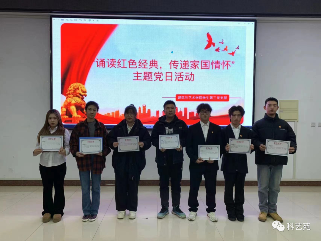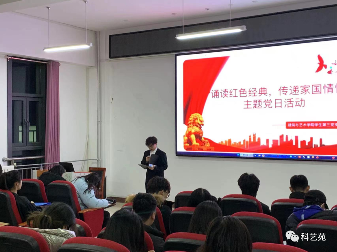 学生第三党支部12月2日在明德楼B401开展了“诵读红色经典,传递家国情怀”主题党日活动。在本次党日活动中,支部举行了朗诵比赛,同志们都朗诵了各自准备的爱国诗词,他们传递了家国情怀,激发了对祖国的热爱之情,共同感悟了红色经典的深刻内涵。