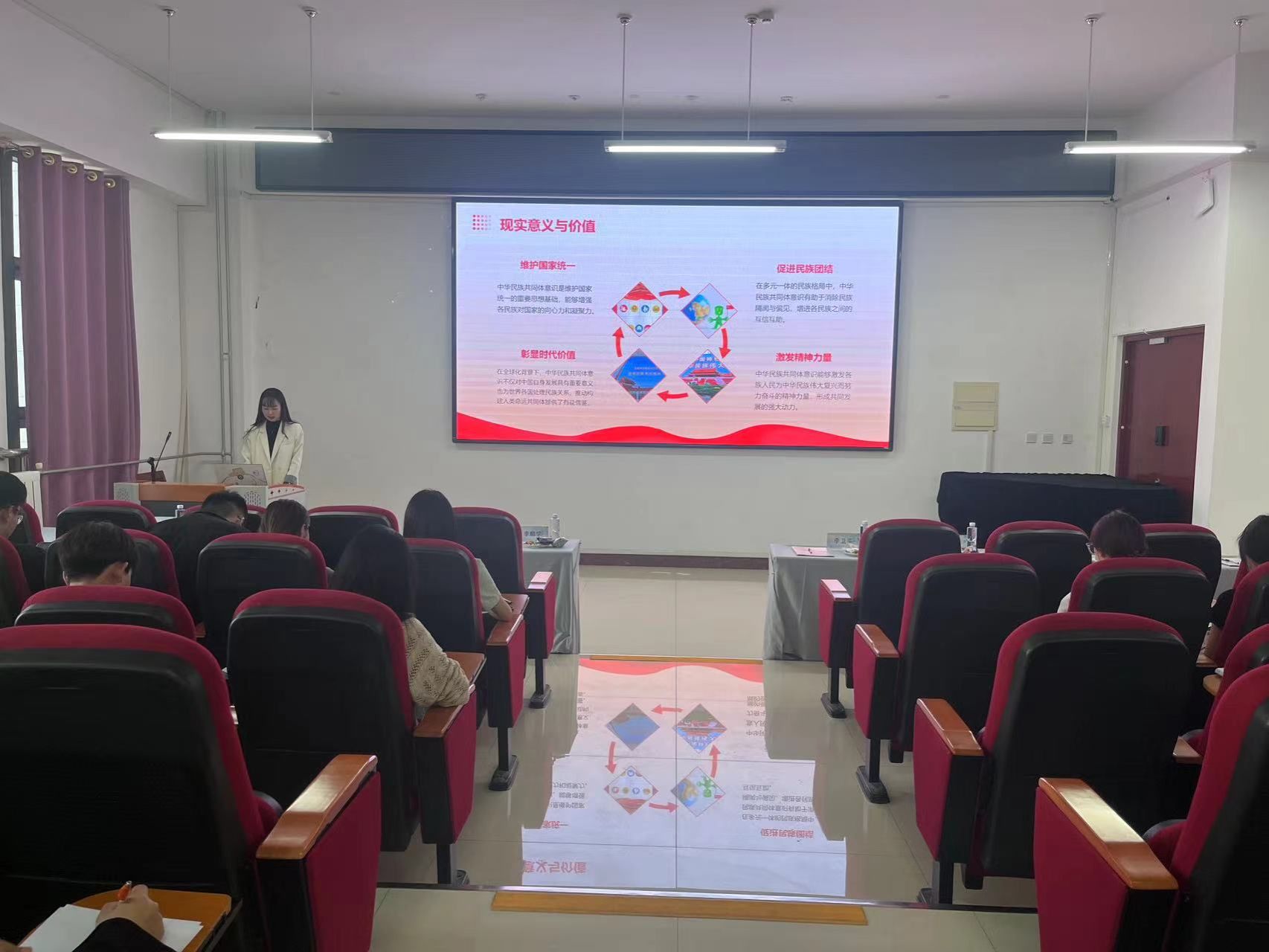 学生第四党支部于明德楼B401组织开展“铸牢中华民族共同体意识”主题学习,旨在深化学生对中华民族共同体意识的理解和认同,进一步促进民族团结进步,增强民族认同感和自豪感。