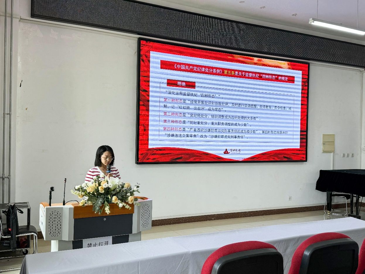 张轩老师指出,党的纪律是党的各级组织和全体党员必须遵守的行为规则,是维护党的团结统一、完成党的任务的保证。全体入党积极分子要原原本本学习《条例》,推动《条例》入脑入心,做到学纪、知纪、明纪、守纪;要发挥表率作用,带头践行《条例》,将党纪学习的成果严格落实到工作生活的方方面面。