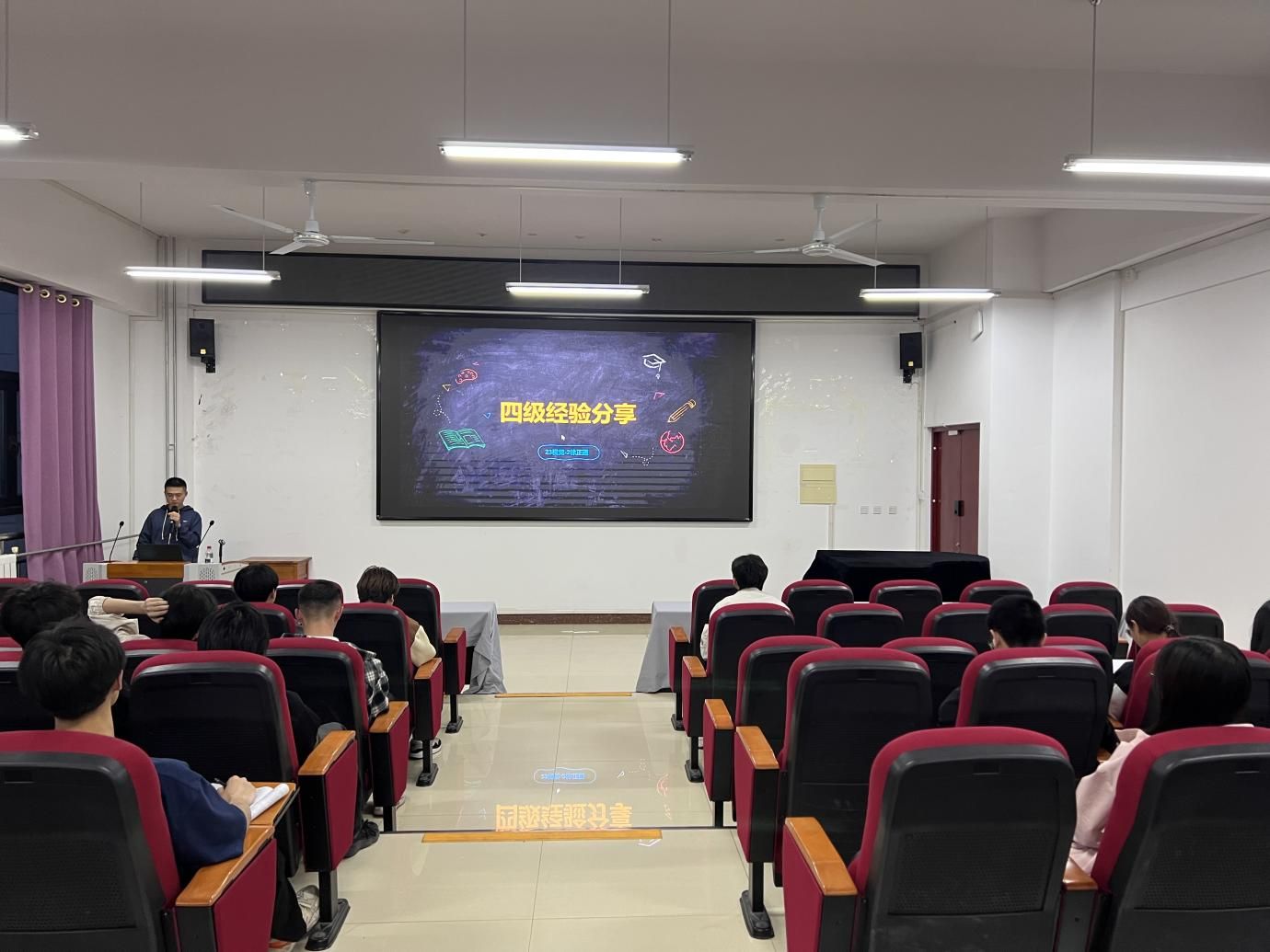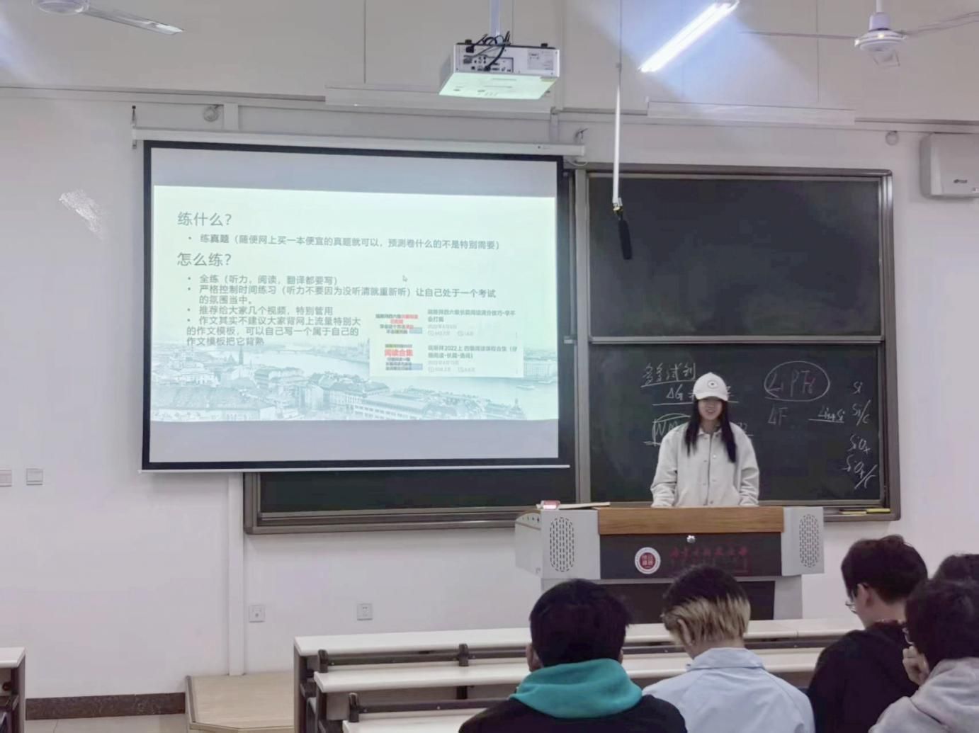 这三次活动分别产品设计李源熙、建筑学任雪儿和视觉传达设计徐正通三位同学进行分享,分享内容从四六级、考研英语的学习方法、备考经验及考试技巧几个方面展开。