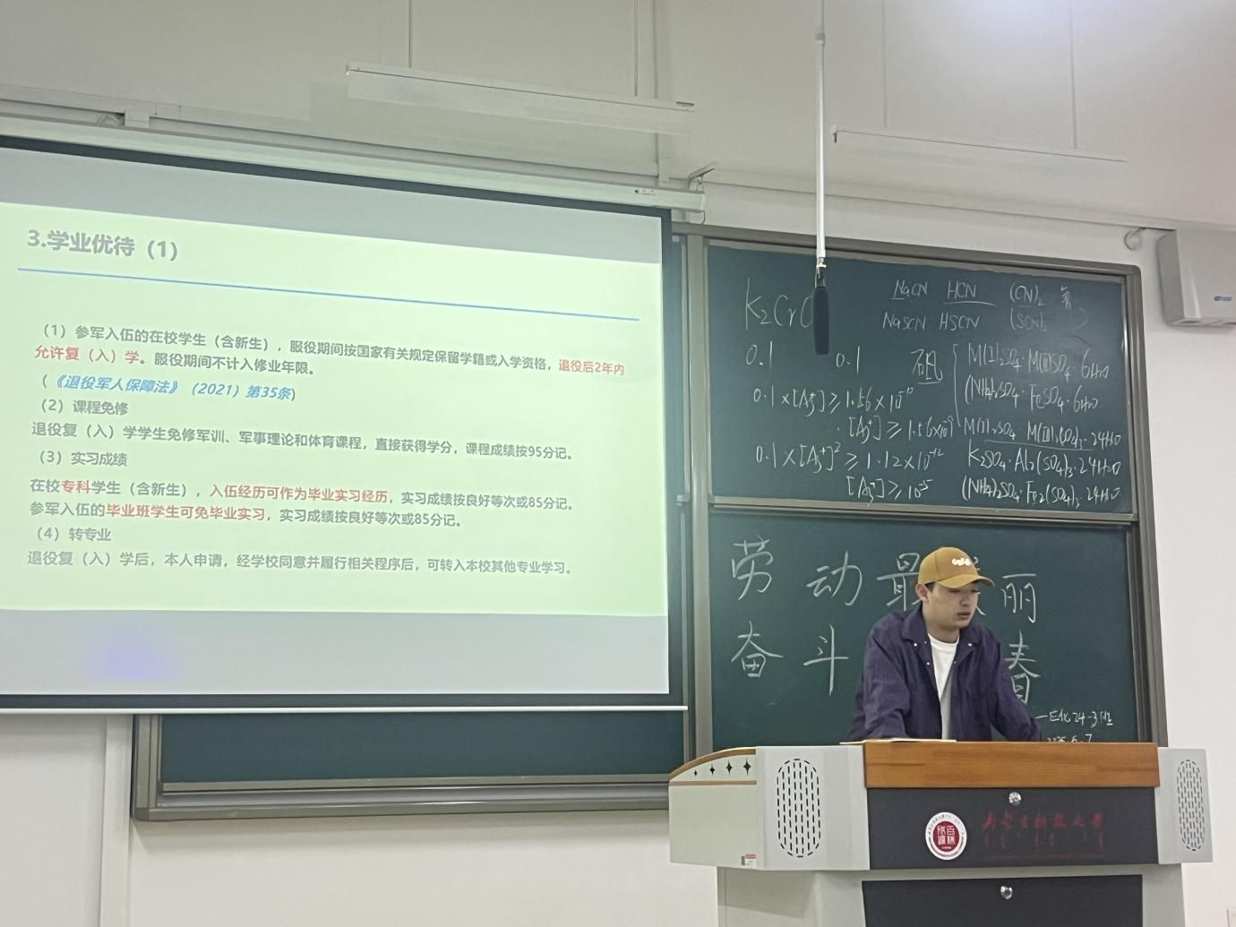 这次活动分别薛佳璐、陈徐、冀鹏辉、夏琦4位同学进行分享,内容涵盖入伍政策、军旅生活、信念培养等几个方面。