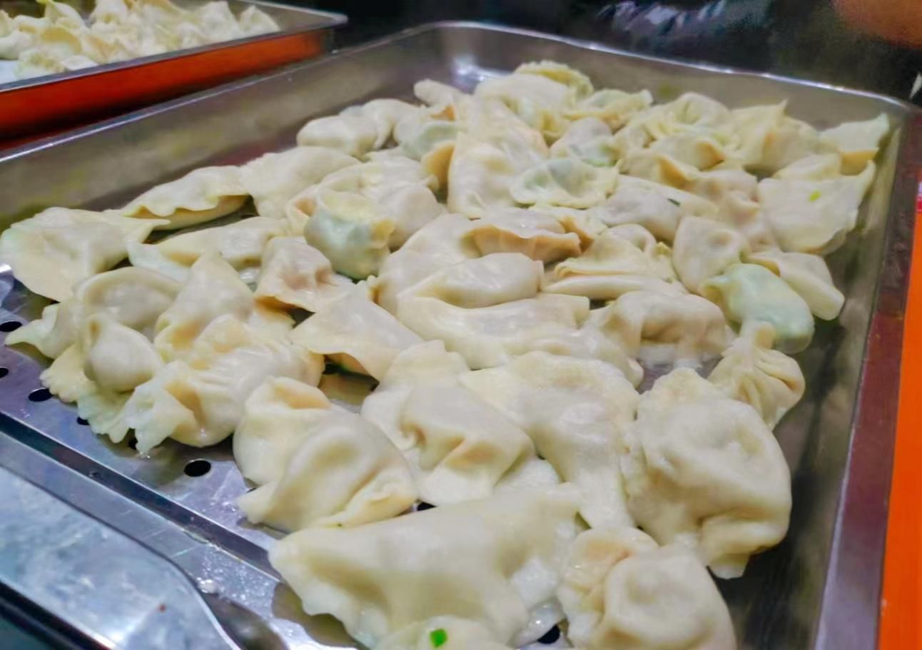 游戏之后,分小组一起包饺子。同学们互相帮助,和面的,擀皮的,包馅儿的,配合十分紧密,最后品尝劳动成果时的喜悦心情溢于言表。