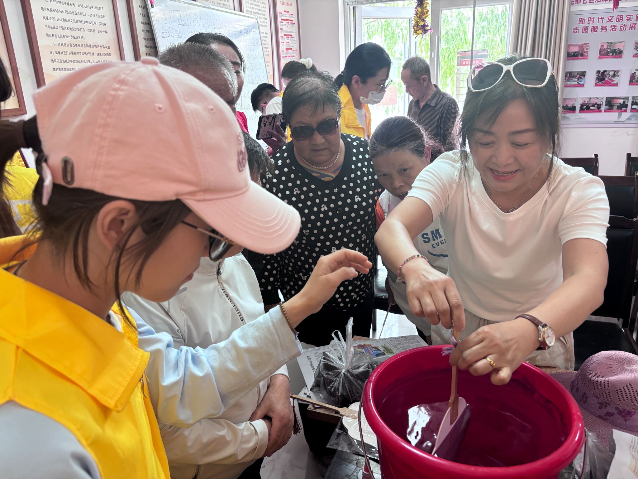 漆扇制作区则成为非遗文化的展示窗口,志愿者带领居民体验传统大漆工艺,一幅幅流动的漆画在扇面上晕染出独特韵味,引得众人连连赞叹。