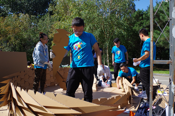 9月23日,2017第二届“心境空间构筑和谐”空间艺术构造大赛在鲁迅美术学院精彩开幕,共有39组高校团队、600余名师生参赛。经过两天的激烈角逐,我校艺术与设计学院“斯钦巴日队”的作品“百翎”斩获一等奖与最佳创意奖。同时,“斯钦巴日队”加入东北环境交流平台联盟院校。该支参赛队伍由我校艺术与设计学院学生陈杰夫、韩超、宋翔、吉磊、李馨、李雅琪、杨富组成,魏栋、靳晓东担任指导老师,刘思源担任实践导师。