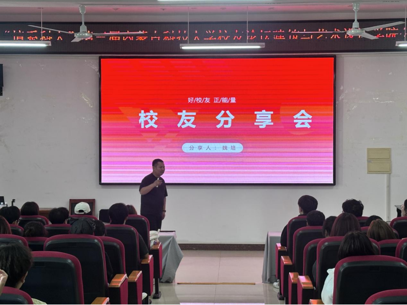 校友事迹分享环节精彩纷呈。2015级产品设计优秀校友、包头铸梦文化信息咨询有限责任公司经理魏培以《小魏的故事》为主线,向朱古力av 广大师生作事迹分享,并鼓励大家向书本学习、向实践学习、向社会学习、向师长学习,现场气氛活跃,反响热烈。