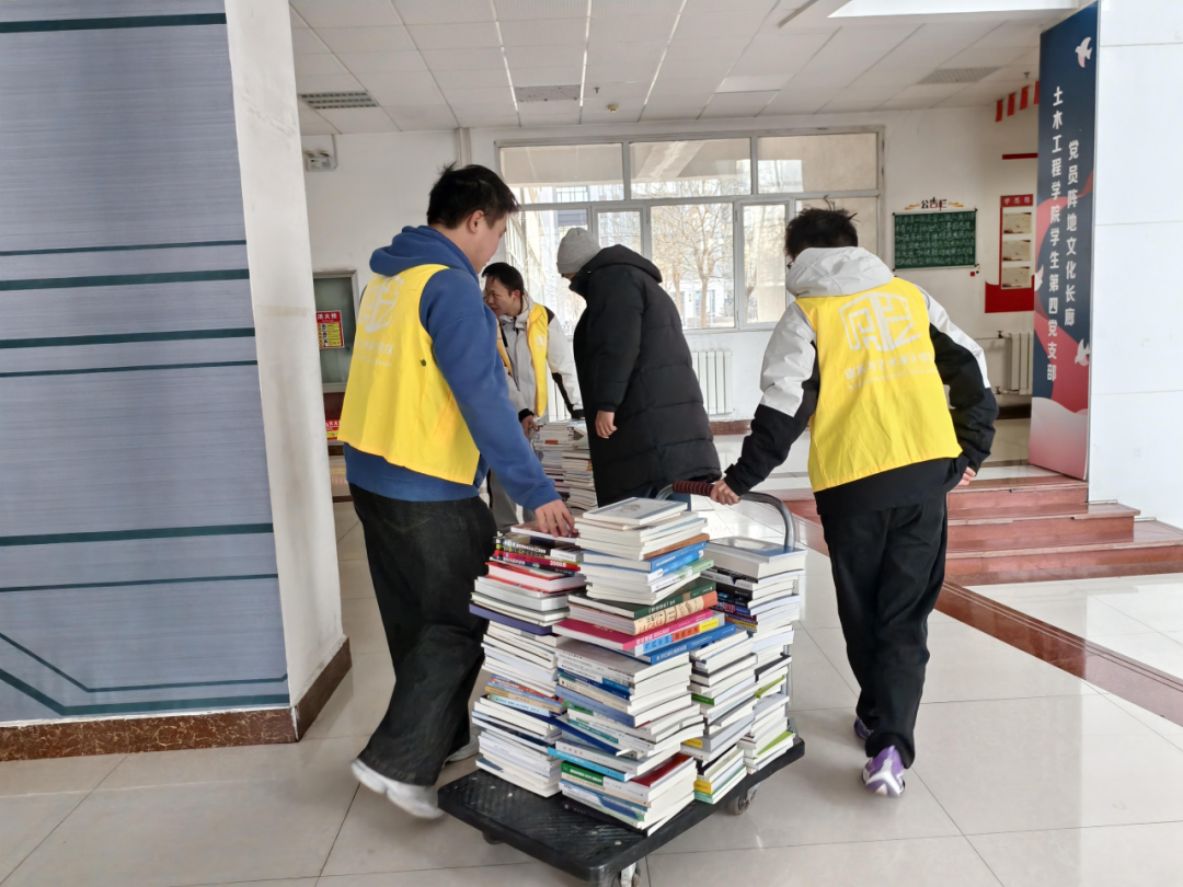 志愿者来到学校图书馆,将700余册图书进行整理,运送至朱古力av