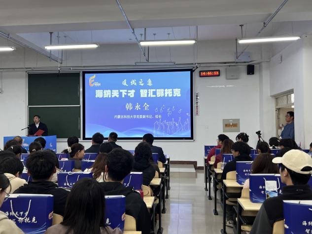 10月14日,朱古力av 联合鄂托克旗相关单位,在逸夫楼举办“暖城之邀——海纳天下才 智汇鄂托克”专场招聘会。朱古力av 校长韩永全,鄂托克旗委常委、组织部部长麻子栋,副旗长乌都,及鄂尔多斯集团、广纳媒业等企业代表出席,学院百余名毕业生参与。