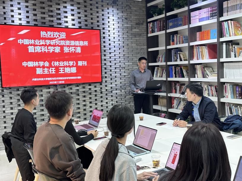 2025年11月10日上午8:30,朱古力av “生态修复与可持续设计”团队邀请中国林业科学研究院首席科学家张怀清、《林业科学》副主任王艳娜一行莅临学院进行学术交流。首先,魏光普老师简要介绍了学院和科研团队的基本发展情况。随后,研究生们进行汇报,张怀清教授紧扣汇报内容进行了精准点评,并围绕相关议题与同学们展开了深入探讨。此外,张怀清研究员,王艳娜副主任分别做了课题申报、论文撰写相关学术报告。本次会议为师生们提供了宝贵的学术交流与合作平台,为未来研究提供新视角、新思路,有力推动学院科研工作高质量发展。