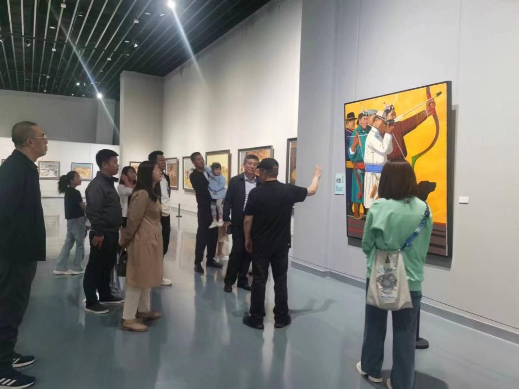 校友会呼和浩特分会组织校友参观并聆听学校老师的讲解。此次展览分为中国画、油画、版画、水彩画、摄影五个主题板块,涵盖学校12位美术学院教师和2位特邀画家创作的150余件优秀作品。