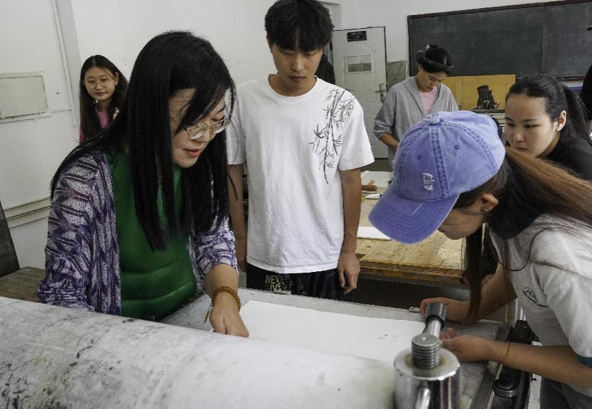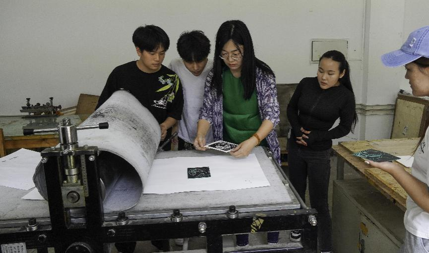 在理解讲座的讲授内容之后,留学生前往建筑与艺术设计学院版画工作室开展美育实践进行了版画的制作和印刷体验。在张曦老师的耐心指导下,每位同学都完成了属于自己的版画作品,体验到了版画艺术的独特魅力。