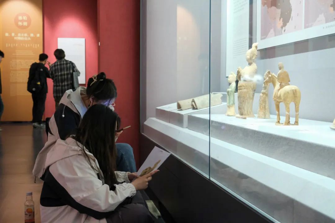 师生,走进包头博物馆开展文物写生活动。本次活动系“艺享北疆 美育铸魂”系列活动之一。活动中,师生们近距离观察文物细节,用画笔描绘文物独特的历史韵味,青铜器、陶瓷器等都成为创作素材。